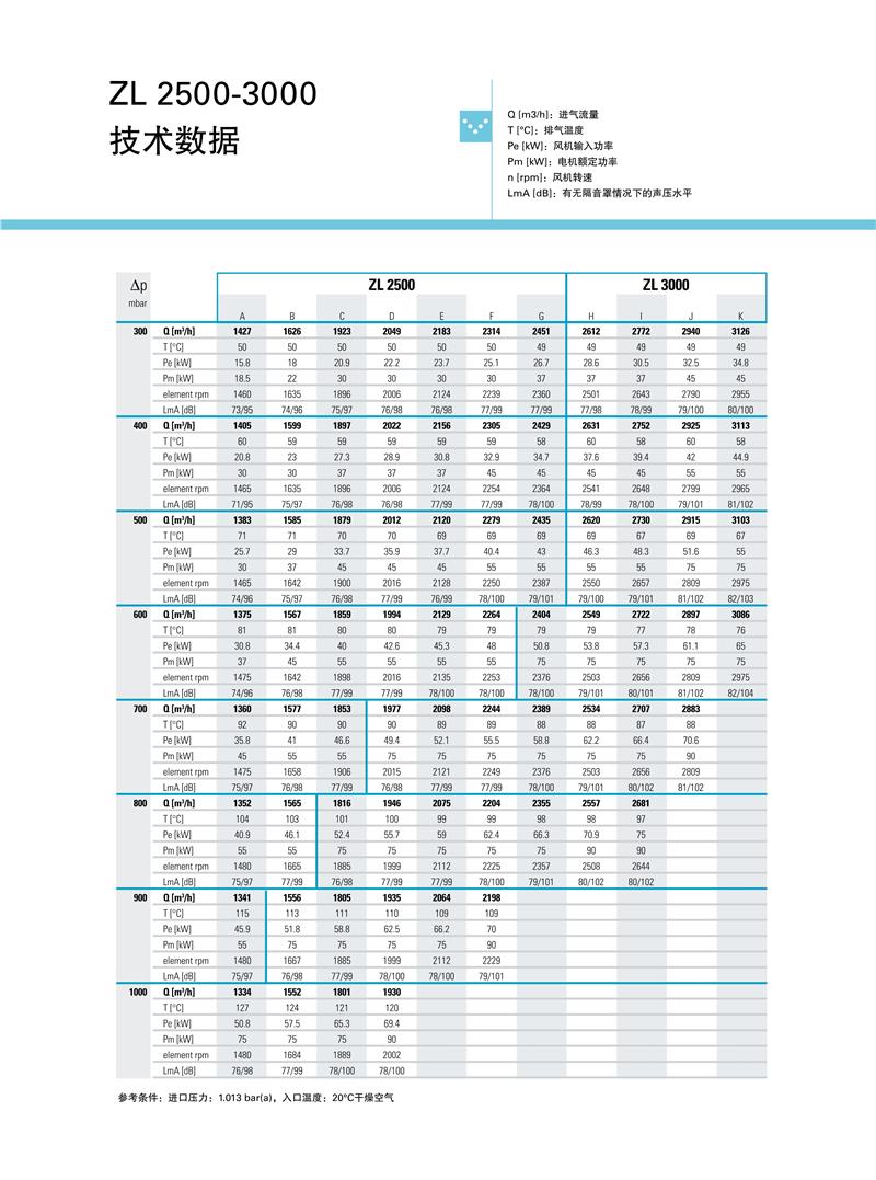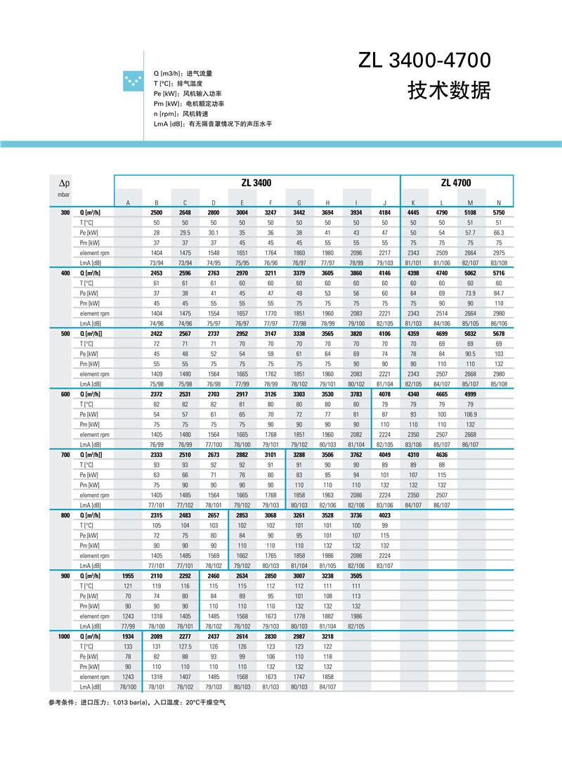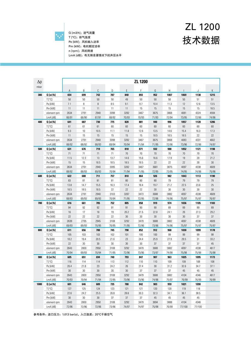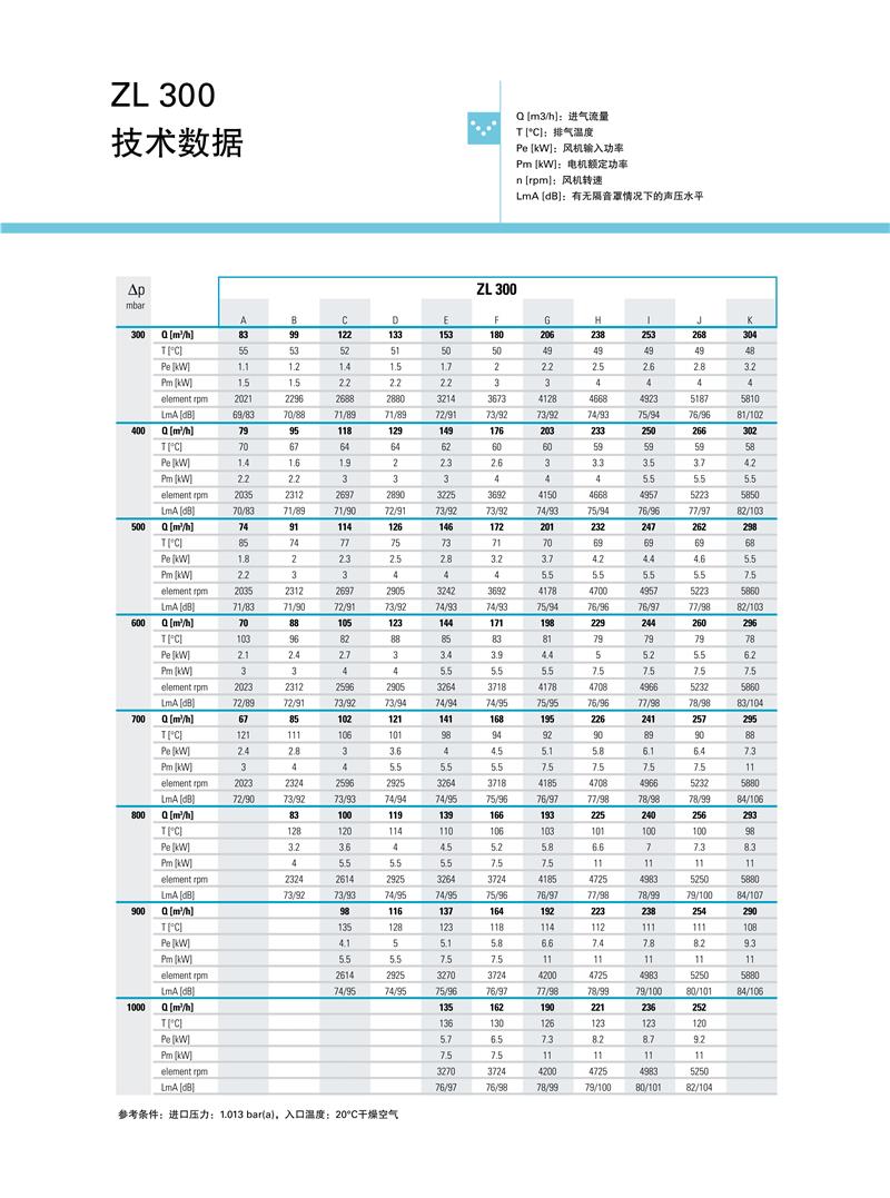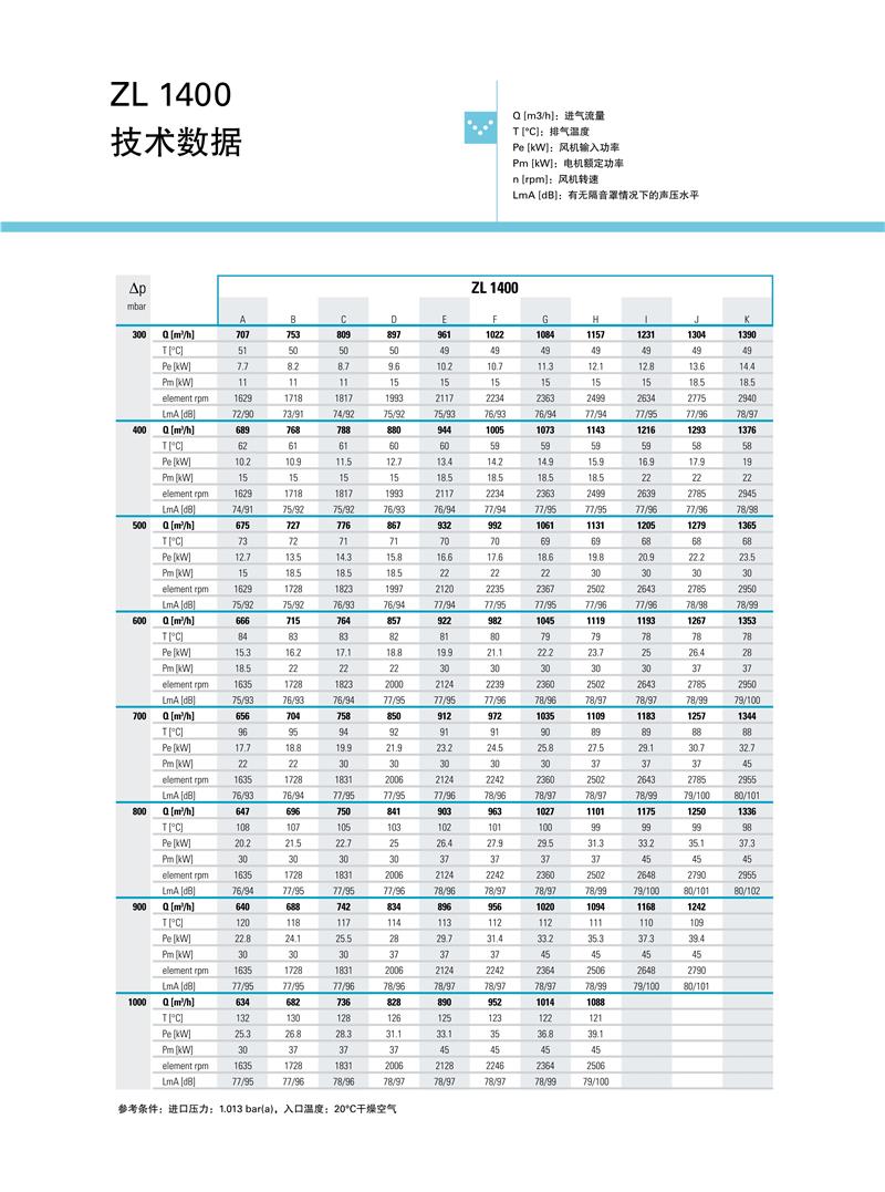 ZL系列1.5-250kw阿特拉斯罗茨鼓风机技术参数: