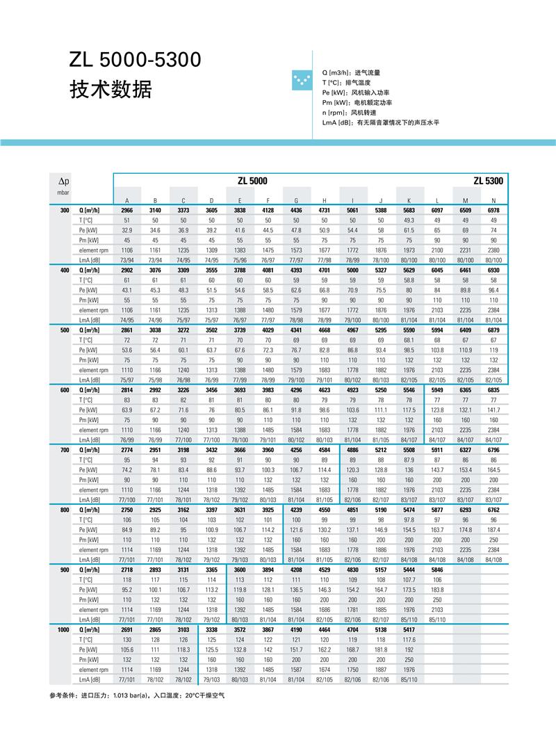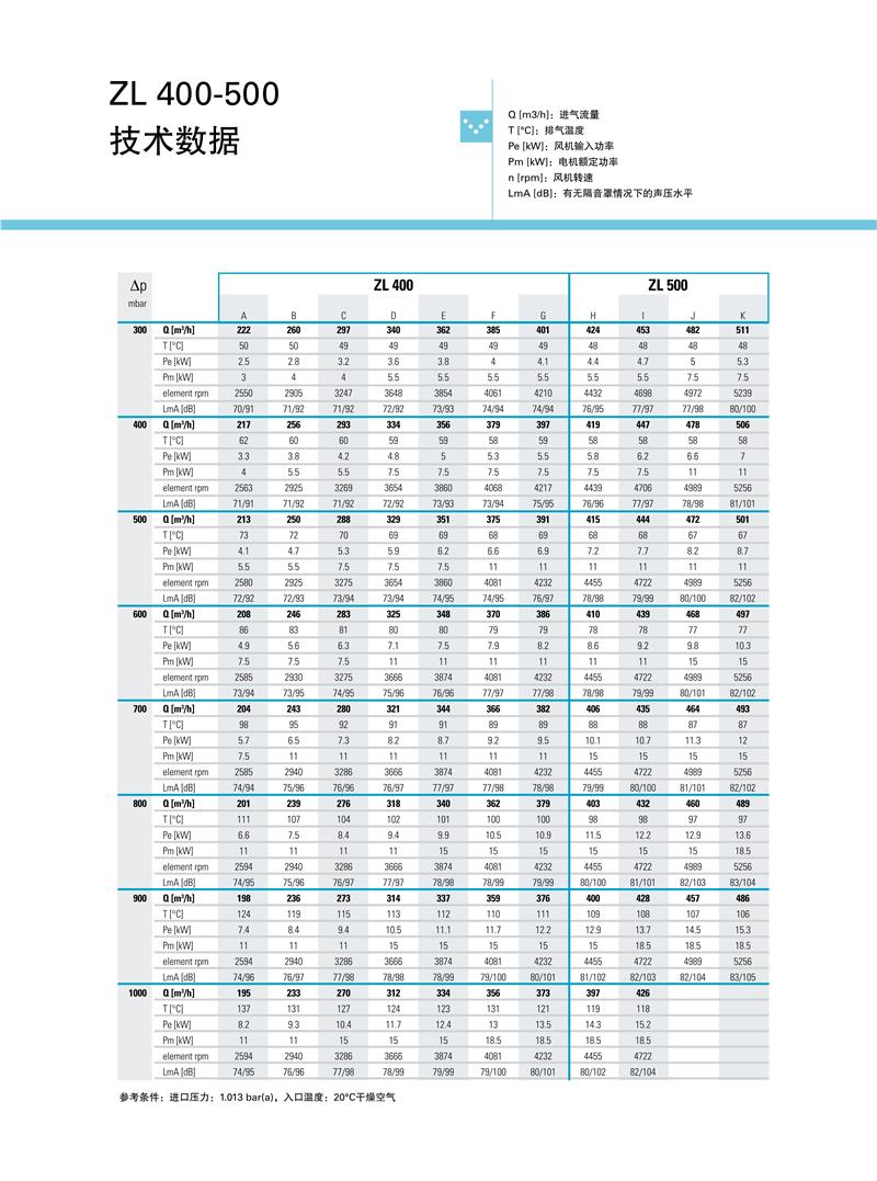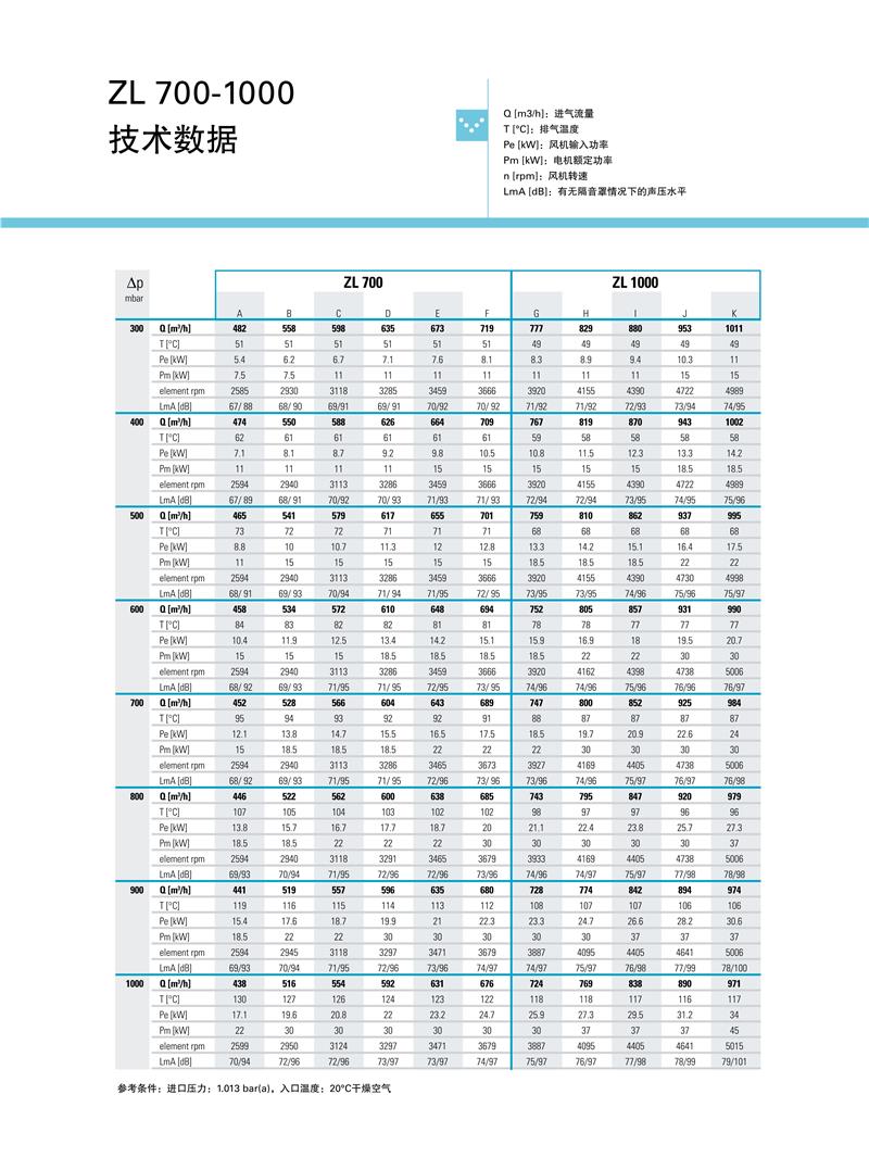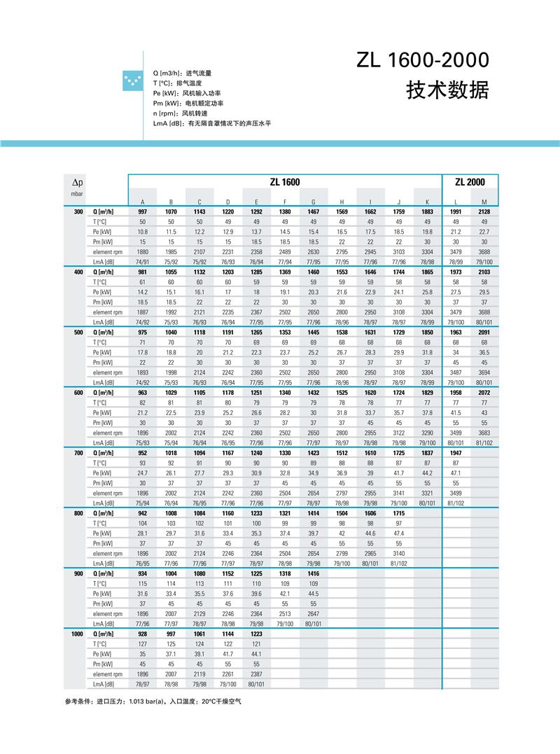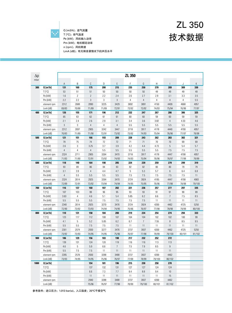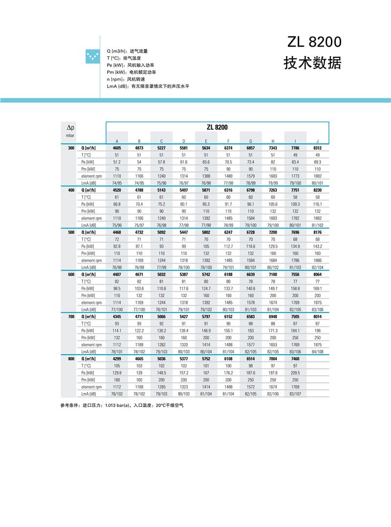 ZL系列1.5-250kw阿特拉斯罗茨鼓风机技术参数: