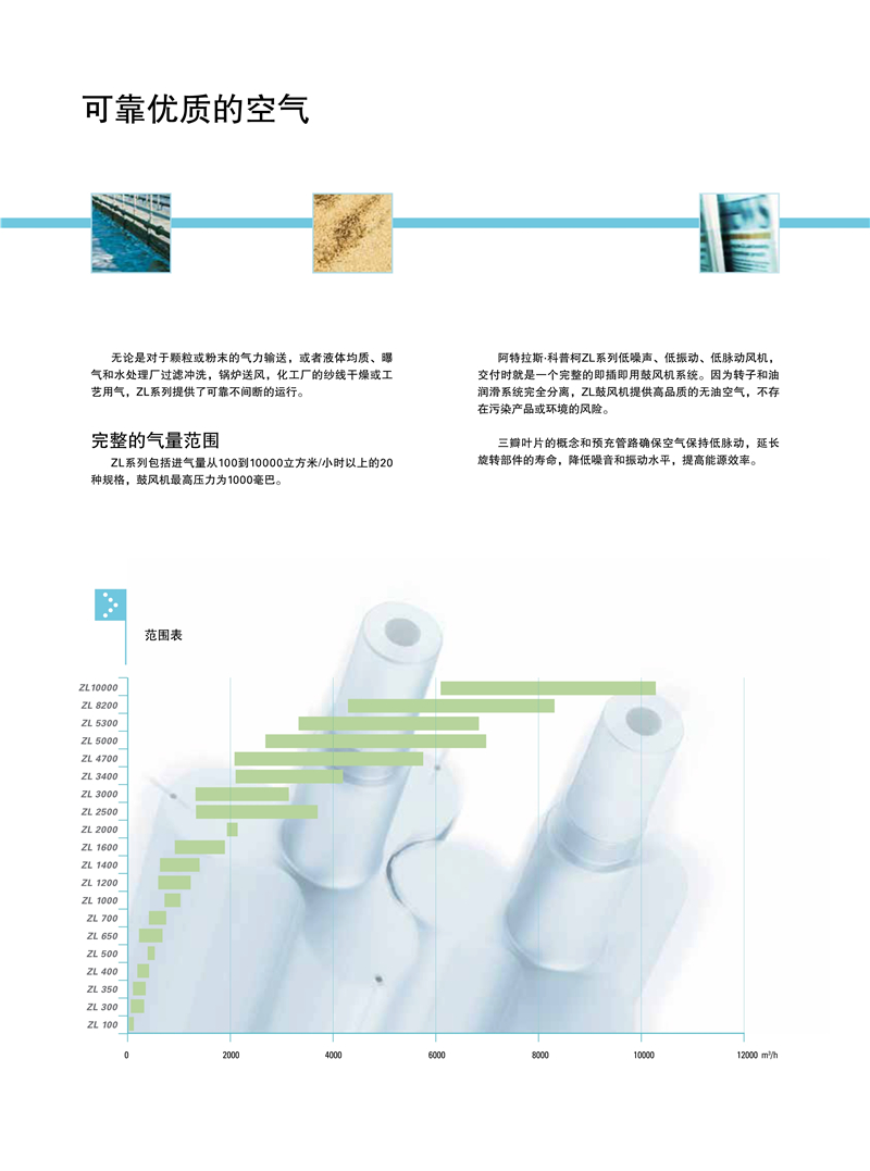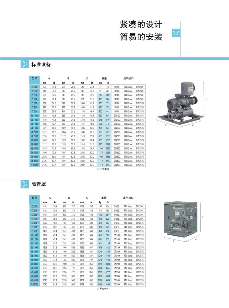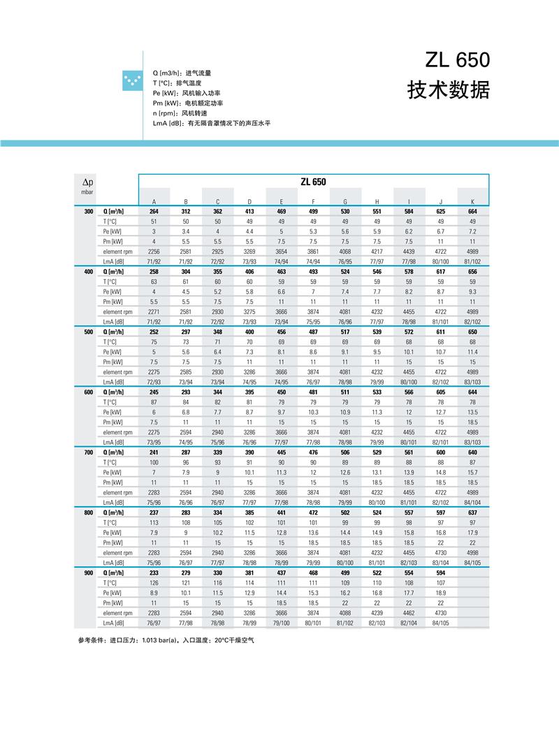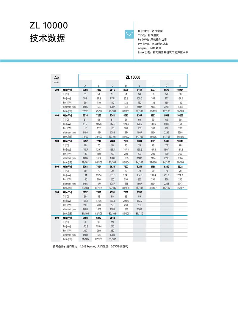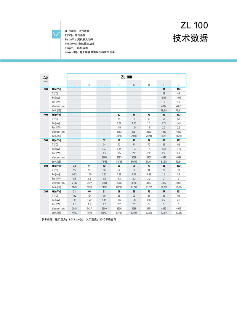 ZL系列1.5-250kw阿特拉斯罗茨鼓风机技术参数: