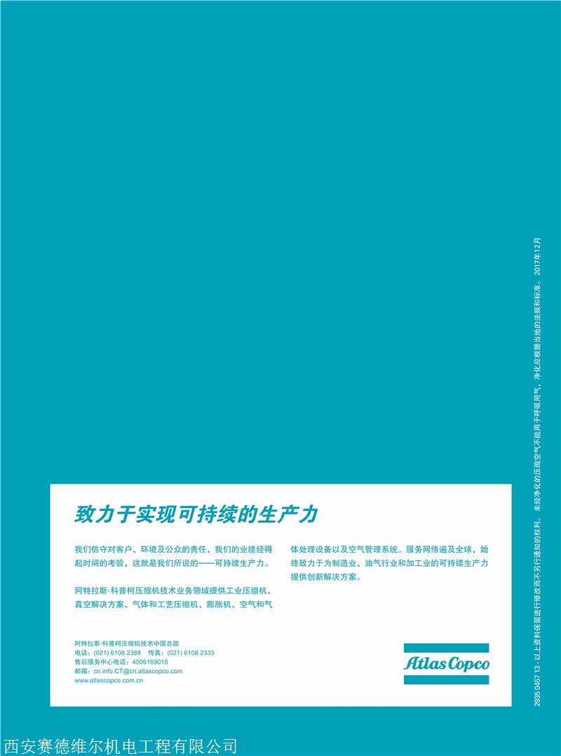 产品详情:西安赛德维尔机电工程有限公司是阿特拉斯科普柯西北区授权代理,sales阿特拉斯微油螺杆空压机,阿特拉斯无油空压机,阿特拉斯离心空压机,阿特拉斯移动空压机,阿特拉斯无油螺旋空出版社,阿特拉斯活塞空压机,阿特拉斯鼓风机,阿特拉斯真空泵,阿特拉斯吸附式干燥机,阿特拉斯冷冻式干燥机,阿特拉斯精密过滤器和其他产品。