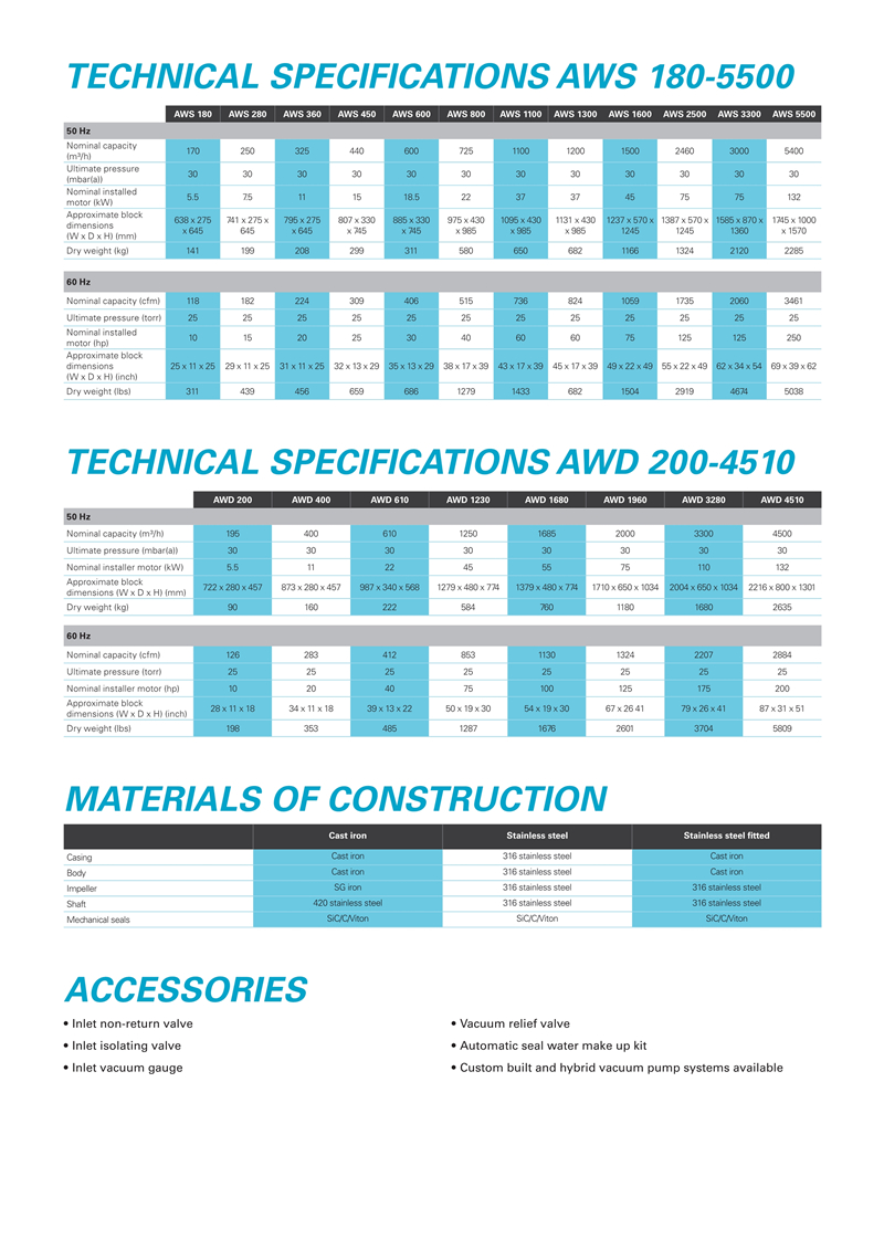 AWS180-5500,AWD200-4510阿特拉斯液环真空泵技术参数: