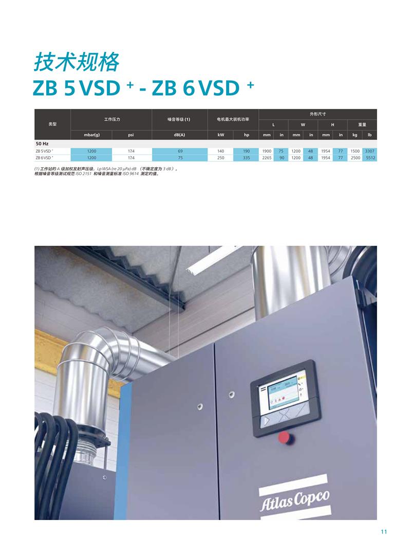 ZB5-6VSD系列140-250kw阿特拉斯无油磁levlev离心鼓风机技术参数: